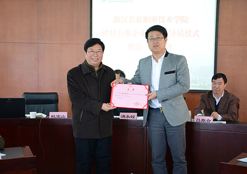 为贯彻落实全国职教会议“改革评价模式,加大行业企业参与职业教育质量评价力度”的精神,进一步完善我院的教育教学督导评价体系。2015年4月8日下午,学院首届行业企业兼职督导员聘任仪式暨第一次会议在行政楼三楼第一会议室召开,仪式由正院级巡视员、教育指导委员会主任洪永铿教授主持,执行院长吕振合教授和副院长杜宝山教授应邀出席并为首聘五名行业企业兼职督导员颁发了聘书。