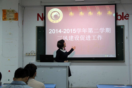 为贯彻落实学院关于加强“三风”建设的要求,按照本学期的工作计划,3月18日下午3点整,商务系在二号教学楼2204教室召开了2014-2015学年第二学期三风建设动员大会。大一和大二各班的班长、团支书以及学生会的干部参加了会议。会议由系学生党支部副书记、团总支书记、辅导员易烈翔老师主持。