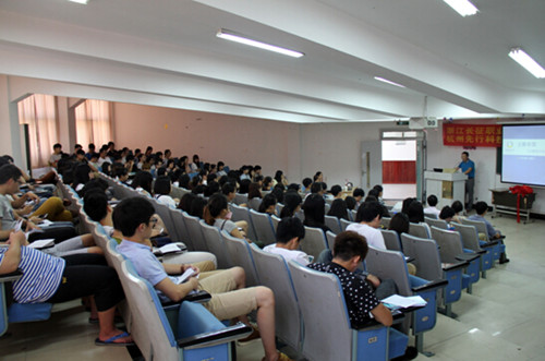 随后,先行科技副总经理阚宏伟就先行科技的企业文化、员工培训、员工成长规划及员工福利、待遇等方面情况做了激情澎湃的演讲。阚宏伟副总经理现场还与同学们进行了交流,学生积极参与了问答互动,宣讲会在积极气氛中圆满结束。(商务系供稿)