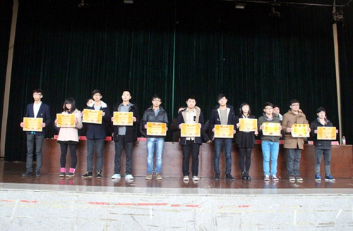 大会在庄严的国歌声中拉开了序幕,首先系党总支副书记陆栋煜老师宣读了计信系2013年度表彰文件,表彰过去一年里所涌现出的先进个人和集体,表彰的奖项分别有:教职工2013年度先进工作者、学生技能竞赛优秀指导教师、校企合作实践基地建设先进个人、教学督导先进工作者、系级创优学风先进班级、道德模范先进班级、优秀学生奖学金,优秀助理班主任、内务整理及文明寝室、学习标兵寝室等。参会领导为获奖代表们颁奖,获奖代表们在师生们热烈的掌声中领取了荣誉证书及奖状。会上,全体师生们还观看了过去一年里计信系记录各项集体及学生活动的视频短片,回顾了过去一年里计信系在“三风建设”、校企合作工学结合、党建思政学生管理工作、寝室文明创建工作以及学生第二课堂活动等各项工作活动中所取得的优异成绩。最后,由系主任盛法生教授致闭幕词,他强调,全系一定要牢固树立发展意识,以教风促学风,并对在场全系师生提出了殷切的希望。