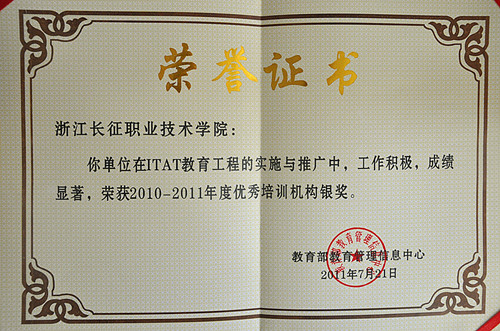 我院喜获全国ITAT教育工程2010-2011年度优秀培训机构银奖