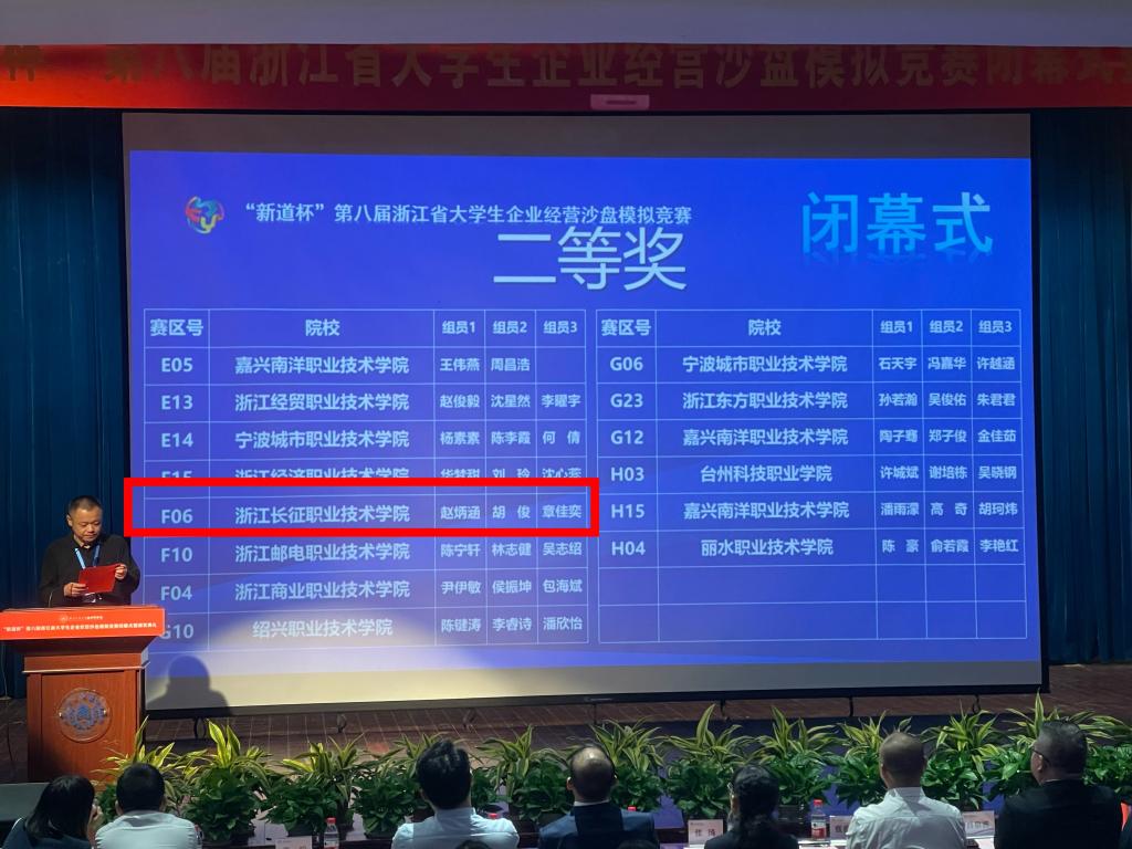 10月28日,“新道杯”第八届浙江省大学生企业经营沙盘模拟竞赛在浙江工商大学杭州商学院落下帷幕。此项赛事由浙江省教育厅、浙江省大学生科技竞赛委员会主办,今年吸引了全省40所高职院校的191支队伍参赛。比赛于10月21日举行首轮线上对抗赛,遴选优胜队伍后再进行28日的线下答辩。经过激烈的角逐,我校财务与会计学院的诸灵老师和商玮老师指导的三个学生团队在此次竞赛中斩获两个二等奖和一个三等奖的好成绩。