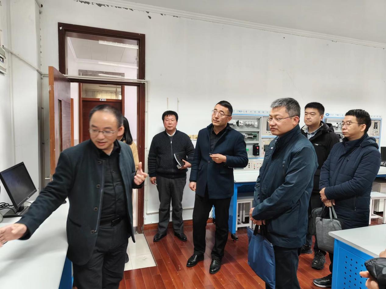近日,浙江省技能人才评价管理服务中心副主任吴天、科长陈彬斌、王玮一行来我校考察2023年职业技能等级认定试点(电工、汽车维修工)工作开展情况。会议由副校长冯新红主持,智能技术学院副院长张晓燕、相关部门负责人参会。
