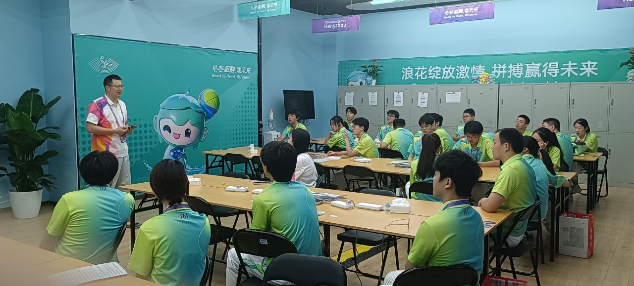 在第19届亚运会和残运会期间,我校基础部教师张自强担任黄龙体育场和游跳馆的摄影主管职务,主要负责统筹和规划记者工作间、场地摄影位、看台摄影位的设施和服务,以及志愿者培训工作。