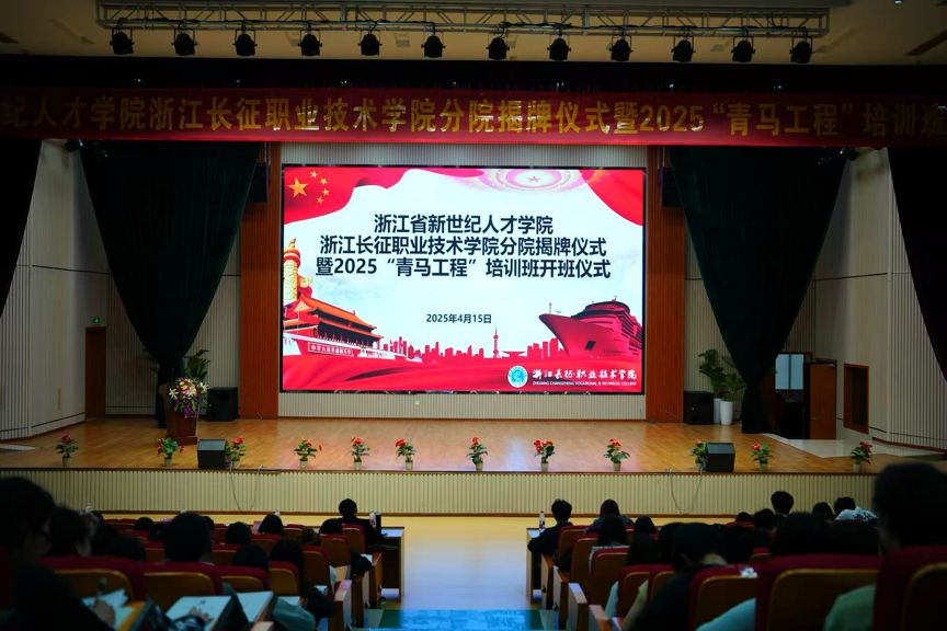 4月15日晚,浙江省新世纪人才学院浙江长征职业技术学院分院揭牌仪式暨我校2025“青马工程”培训班开班仪式在一号报告厅顺利举行。马克思主义学院院长王华,学生处处长章剑飞,学生处副处长郑鲜,学生处副处长翁文亮,团委副书记慕莎出席本次仪式。