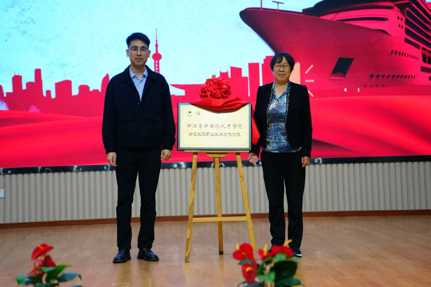 章剑飞与王华共同为浙江省新世纪人才学院浙江长征职业技术学院分院揭牌。