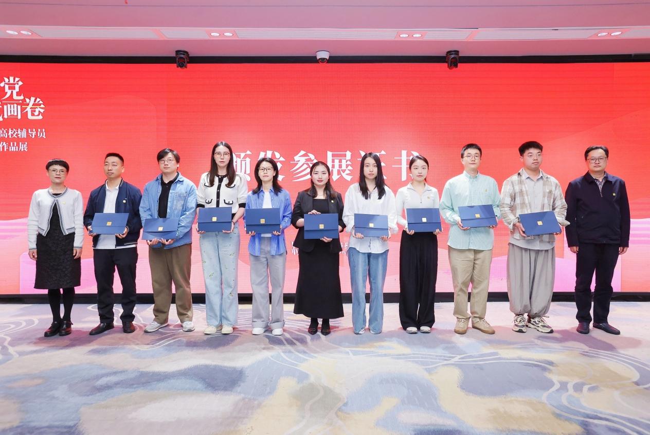 据悉,本次展览共展出45所高校辅导员的81件作品,作品聚焦两大主线:一是以“新时代立德树人”为核心,展现辅导员队伍为党育人、为国育才的使命担当;二是以“弘扬中华优秀传统文化”为脉络,通过书画艺术传递文化自信的精神力量。