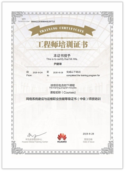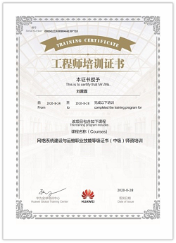 为了稳步推进我校网络技术专业“1+X”证书工作,计信系派出了杨淑贞、李蕾、刘雷霆、尹建璋四位老师参加了8月24日-8月28日“华为”认证中心在我校举办的“2020年华为1+X网络系统建设与运维师资培训”活动,培训内容涉及“网络系统建设与运维”内容的十一个教学模块。