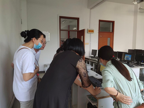 试讲结束,指导教师们又带着新教师们到实训室机房熟悉环境,现场演示教师机中的教学软件如何操做,以及收发作业功能、点名等功能。