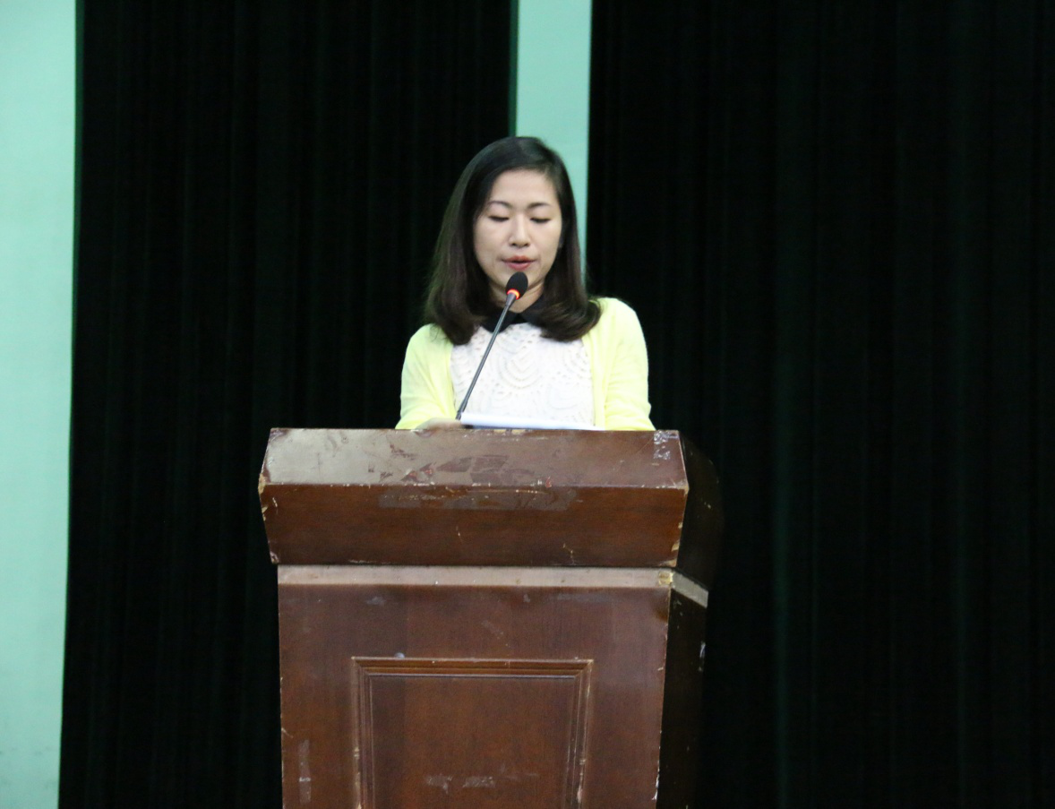 应用语言系王秋老师代表全体教师发言,王老师结合自己从教经验,鼓励新同学要积极面对挫折,在战胜挫折中成长;树立明确的目标,选择好自己的人生方向。让自己不断充实,享受美好的大学生活。