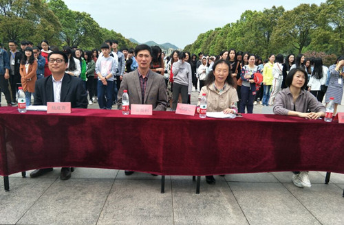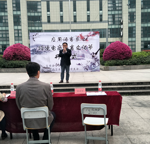 伴随着应用语言系15商务英语1班董兼真和15商务英语2班苏曦冉带来的歌曲,开幕式正式拉开了帷幕。在开幕式上,首先由系党总支副书记郑雪春老师宣布应用语言系第二届跨境电商语言文化节正式启动。接着系主任杨成青教授就此次文化节致辞,他希望通过举办此次文化节系列活动,能对语言系的教风学风,以及全体学生的专业知识学习和自身素质提高起到良好的推动作用。孙佳欣同学代表文化节组委会宣读《关于举办应用语言系第二届跨境电商语言文化节的通知》,余文伟同学也代表全体学生表态:认真对待积极参与文化节各项活动,充分利用此次平台,检视专业知识,展现自我,为今后踏出校园走向社会,奠定扎实的基础。