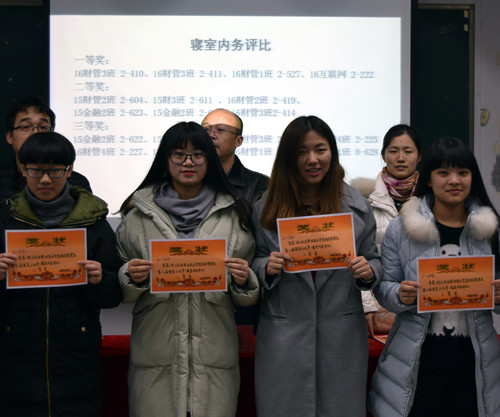 2016年12月19日下午6点30,由财务管理系学生会承办的财管系第六届寝室文化节——“和谐财管,温馨寝室”寝室评比颁奖典礼在阶梯教室1218成功举行。出席本次活动的嘉宾有我系副主任鞠岗老师、系总支副书记徐静老师、系团总支书记翁文亮老师,各班学生代表。