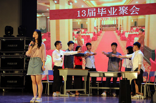 为庆祝历届校友重返母校,会计系于当晚18:30分举行了以“畅叙青春,缘聚会计”为主题的晚会,学院领导及班主任、任课老师出席此次活动。随着会计系宣传片的播出,晚会正式拉开帷幕,火热的开场舞《旗舞飞扬》点燃了现场的气氛;情景剧《青春留不住》唤起了青春的回忆;歌曲串烧将晚会推向了高潮;表演《双黄》,展现出会计学子非凡的口才。晚会期间,精彩纷呈的节目,抽奖互动环节,以及校友的精彩发言,赢得了阵阵掌声。最后,舞蹈《植物大战僵尸》为本次晚会完美谢幕。