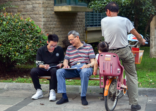 志愿者与社区居民沟通交流