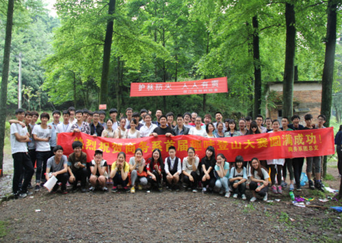 为了活跃校园学习气氛,丰富学生课余活动,加深同学间的沟通和配合,增强团队意识和吃苦耐劳精神,商务系学生会于5月14日组织学生举办了趣味登山比赛。