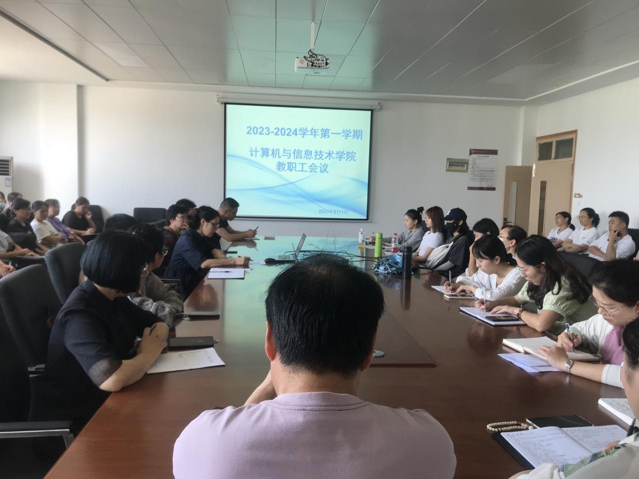 为做好新学期的各项工作,确保新学期工作顺利有序开展,计算机与信息技术学院于9月1日在图308室召开了全体教职工会议。