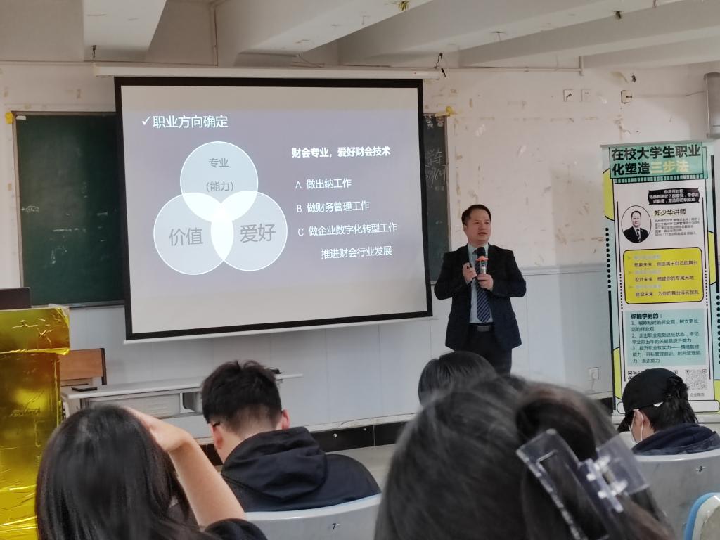 郑少华以“在校大学生职业化塑造三步法——树立职业理想、做准职业规划、提升职业素养”为题,结合财务岗位特色,旁征博引地为同学们讲解了职业生涯规划的重要性,利用真实案例结合自身体会,教会同学们带着“职业理想”去创造自己的“理想职业”的方式方法,带领学生找准能持续提升能力和价值的职业方向,帮助同学们提升情绪管理、目标管理、时间管理、表达能力等多个维度的职业素养。同学们纷纷表示收获颇丰。