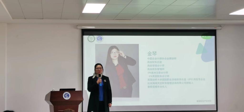 11月22日下午,财务与会计学院数智财会产业学院在图书馆403室举行数智化税企服务专题教学活动,由学校特聘教授、杭州海阔天空财务管理咨询有限公司创始人兼查税宝城市合伙人金琴主讲,学校特聘教授、杭州杭澄财务管理有限公司总经理郭鹏主持。学校财务与会计学院党政领导班子、数智财会产业学院讲师团部分讲师、财务与会计学院学生代表参加了此次活动。
