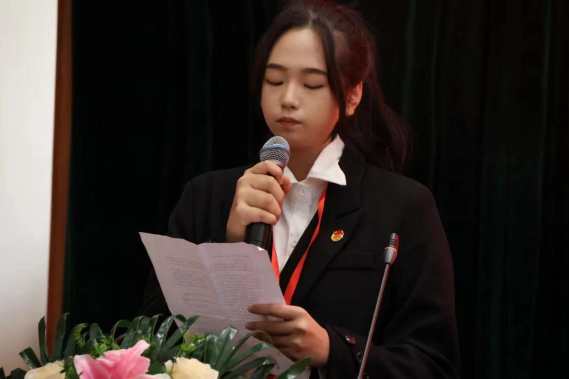 第二届团总支副书记王浩楠代表第二届团总支、学生会作工作总结,他全面回顾了过去一年取得工作成绩,分享了自身感悟,并对新一届团总支、学生会提出了希望。随后,丁慧瑛宣读了计算机与信息技术学院第三届团总支、学生会干部任命文件并为新一任学生干部授牌。