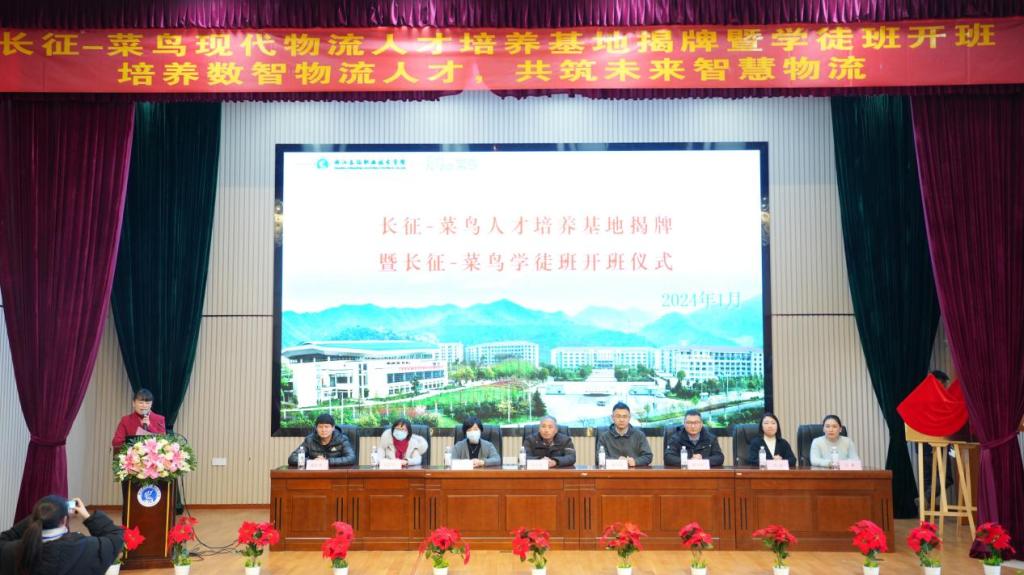 随后,吴少俊与董军本为“长征-菜鸟现代物流人才培养基地”揭牌,王珍与薛永军为“长征-菜鸟物流学徒班”揭牌。菜鸟物流公司代表为学徒班学员颁发了录用证书。