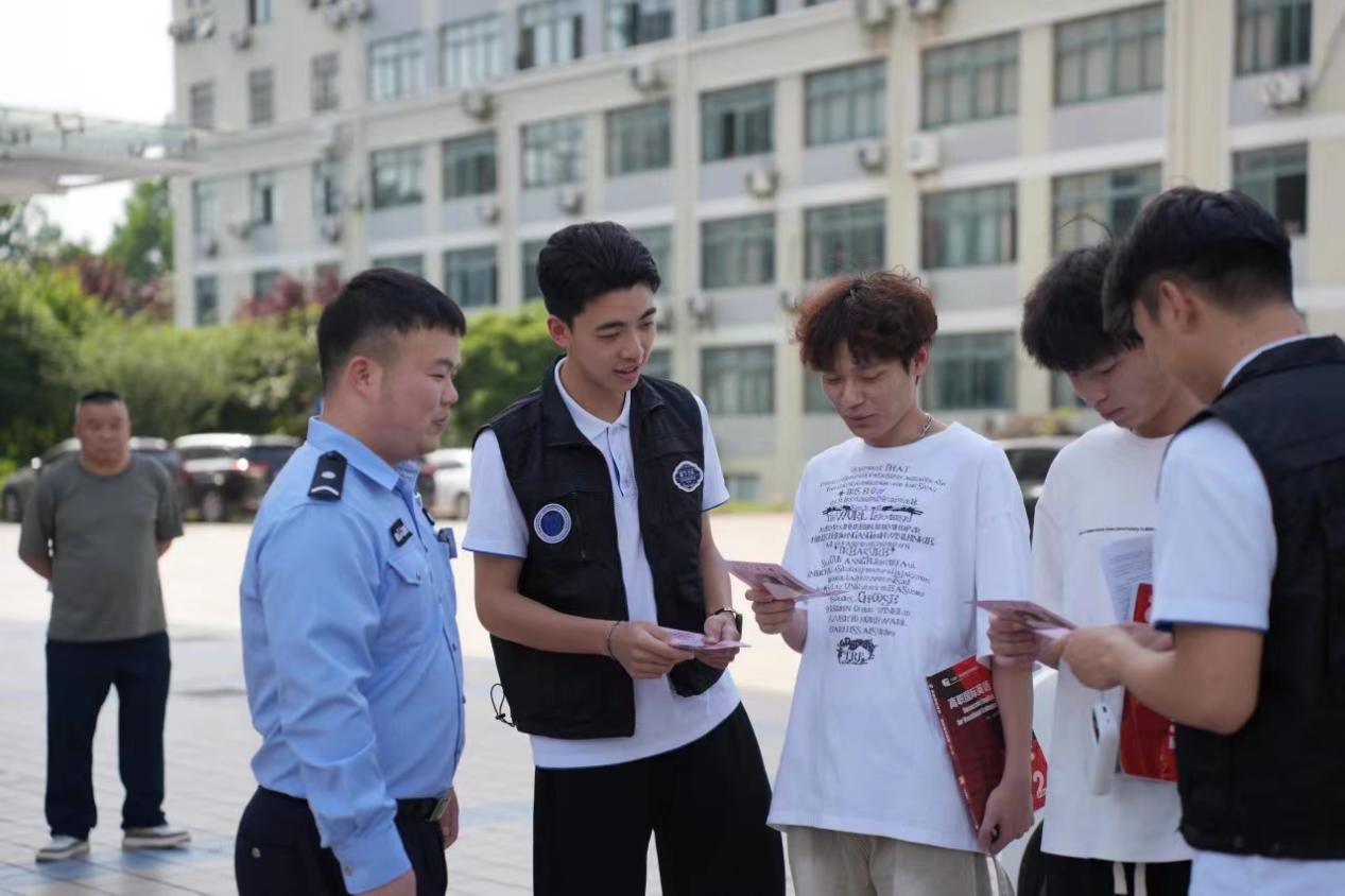 在对反诈知识有了深入了解之后,留下派出所警官们与小组成员们来到学校,面向广大师生开展现场宣传。反诈劝阻体验小队向师生们发放精心制作的宣传单页,耐心地讲解防骗知识,提醒师生在日常生活和网络活动中保持警惕,增强自我保护意识,共同防范电信网络诈骗的侵害。