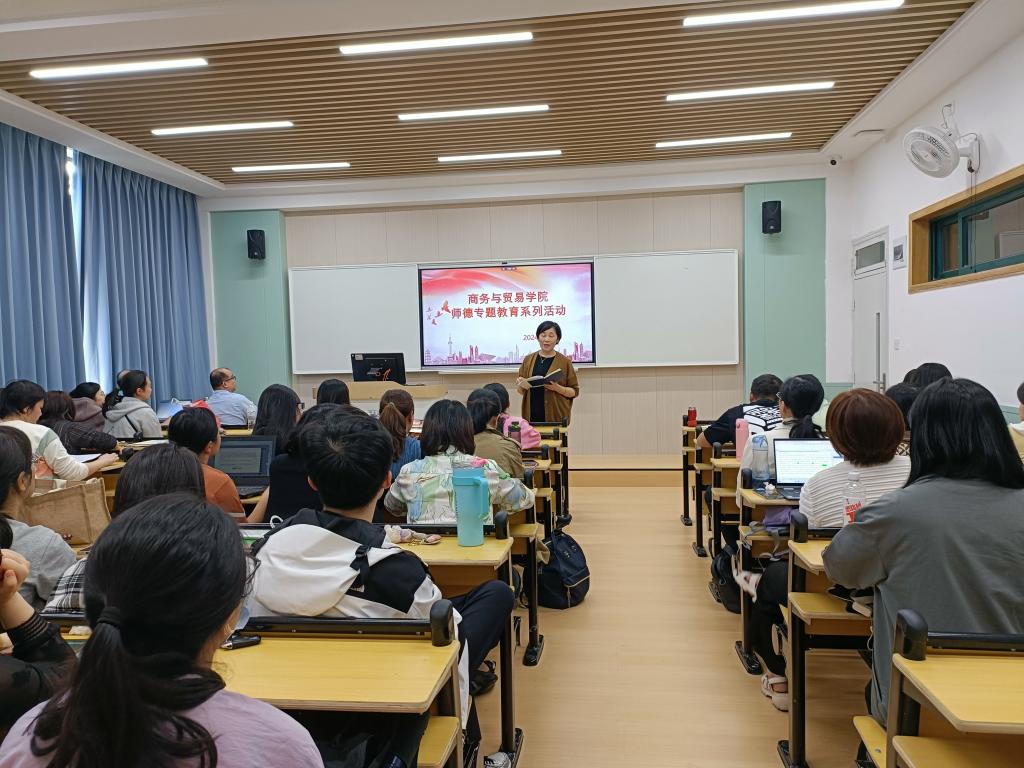会上,商务与贸易学院教师党支部书记钟燕为大家作了题为《师德师风,教育的灵魂与基石》的专题辅导,她从师德师风的内涵、重要性以及涵养师德师风的措施等三个方面进行了系统阐述,不仅深入剖析了师德师风的内涵与外延,还通过引用国家相关政策文件,强调了师德师风在教育教学工作中的重要性。同时,钟燕结合现实案例,既有正面典型的激励,也有反面教材的警示,让与会教师深刻认识到师德失范的严重后果,增强了与会教师自觉践行高尚师德师风的责任感和使命感。