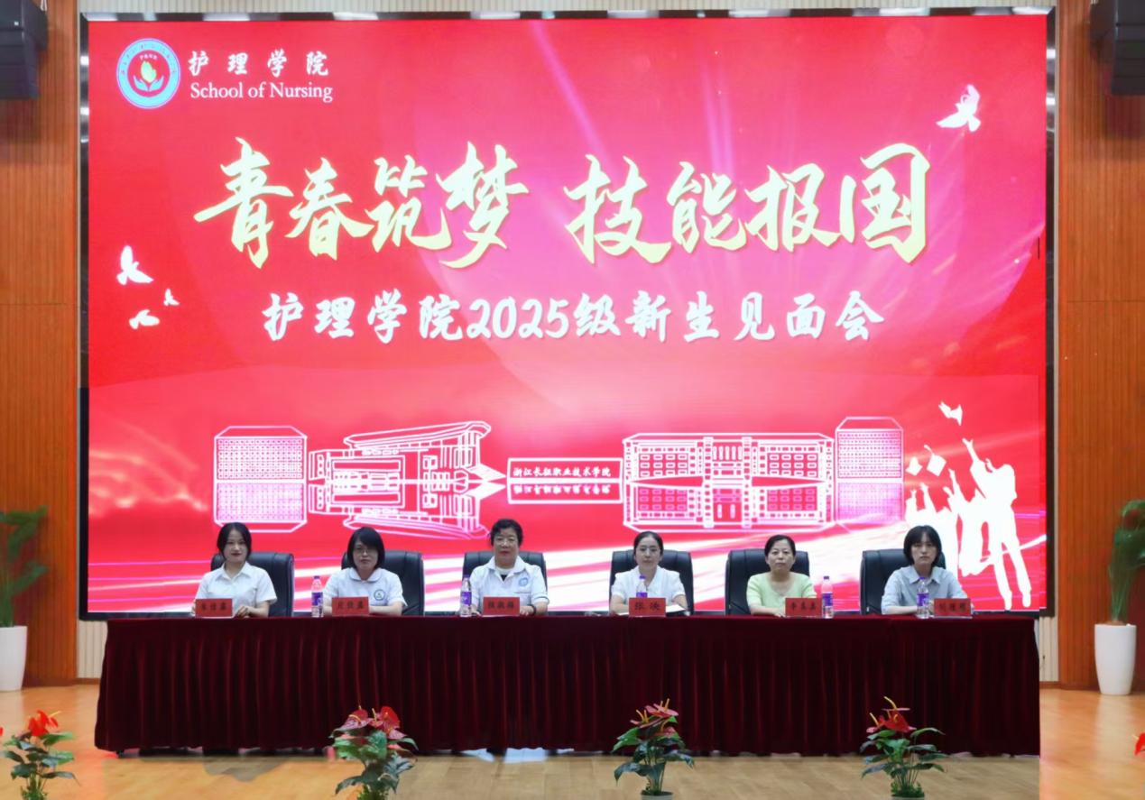 近日,护理学院“青春筑梦,技能报国”2025级新生见面会在一号报告厅隆重举行。护理学院院长祖淑梅、党总支书记张泱、副院长应佳盈,全体专任教师、辅导员、2025级全体新生及新生助理班主任共同参加了此次大会。