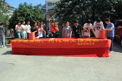 通过为灾区募捐及签名的活动,校内掀起了一股为余姚加油的浪潮,这正符合次此活动的口号——“为余姚加油,用行动支援灾区”。(商务系供稿)