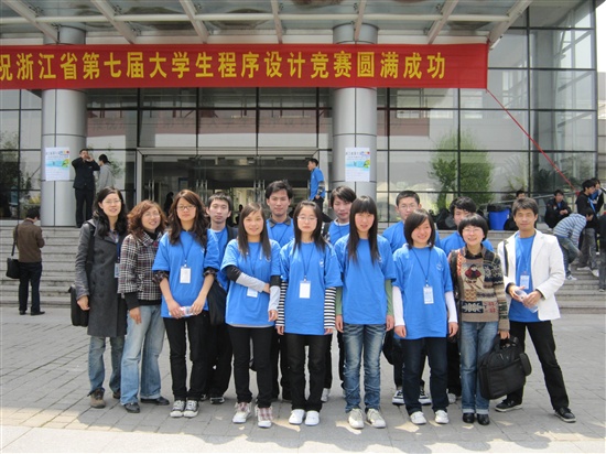 浙江省第七届大学生程序设计竞赛于4月17日在浙江大学紫荆港校区成功落下帷幕,我院计算机系沈萍、相方莉和廖智蓉老师带领3支代表队参赛。经过5个小时激烈角逐,由沈列(07软件2)、李海霞(08软件1)、陈诗诗(08商英3)组成的代表队获得大专组银奖;由李遵源(09软件)、叶挺(09系统维护)、陈倍(08商英5)组成的代表队获得大专组铜奖。